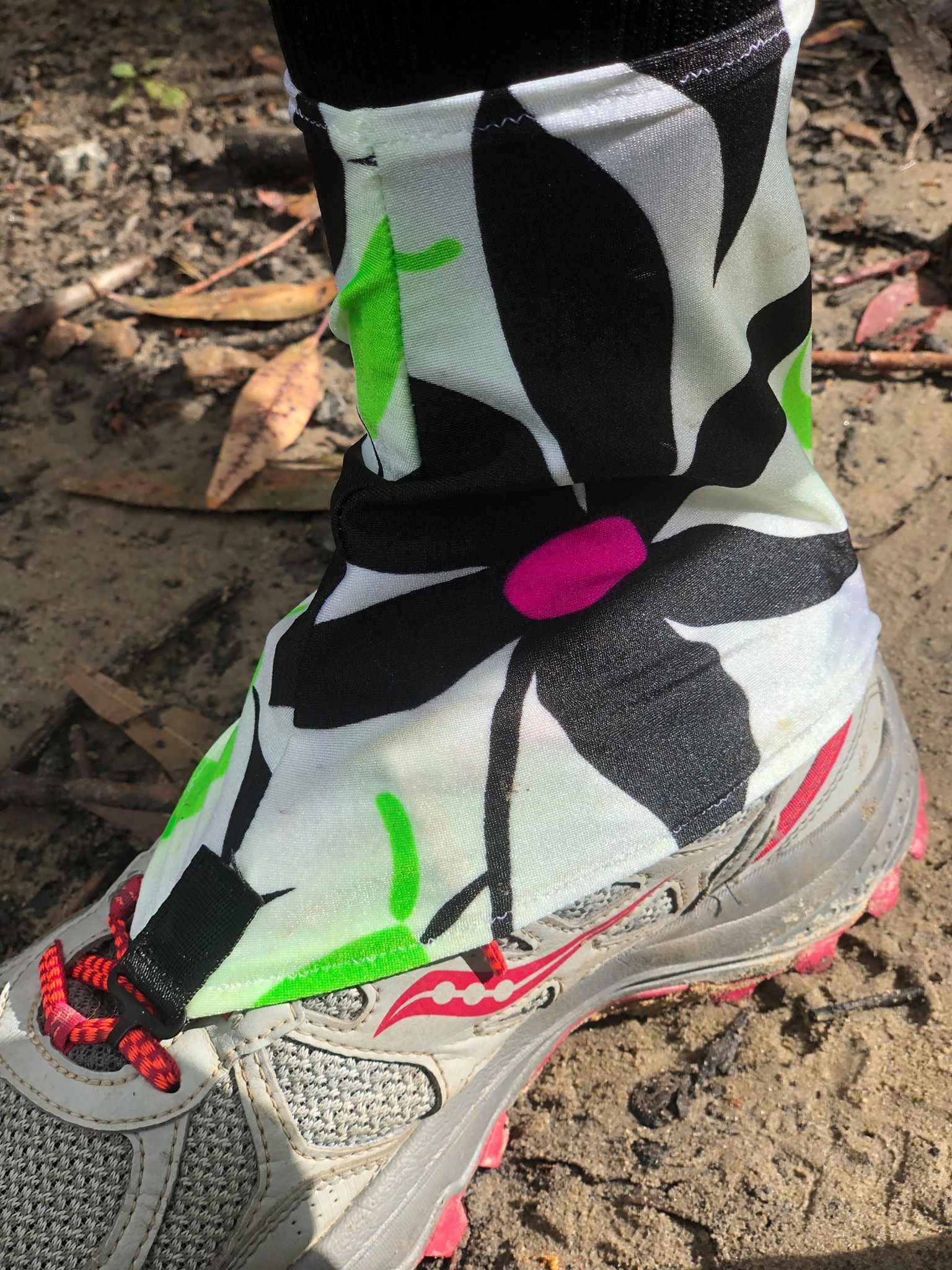 Trail Gaiters are fun, stylish and groovy lightweight stretch lycra gaiter that covers the top of your shoes when out trail running, hiking, walking or any outdoor activity.